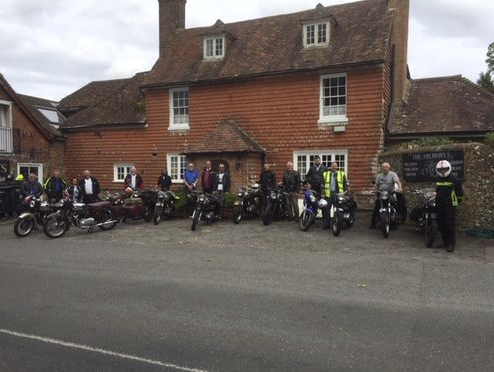 We enjoyed a 5th year of camping at the Milburys. Some return visitors and some new which made for a great weekend. Socialising in the pub on Friday evening with a welcome quiz set by Jo Dean, and a tie break finally deciding Colin, Gerry, Andy and Deb as triumphant. Rain set in for the night and unfortunately into Saturday morning which meant that some went on the ride out on four wheels to Thruxton, home of Hampshire and Isle of Wight Air Ambulance. A very interesting visit, arranged by Joe Barge before a pub lunch stop at the George in Middle Wallop. Then back to The Milburys for afternoon tea and cakes, before an evening of skittles and a raffle. Sunday morning, saw a great turnout (I counted at least 16 bikes)for the annual ride out to Stokes Bay for an ice cream before packing up camp and saying our final farewells for another year.
